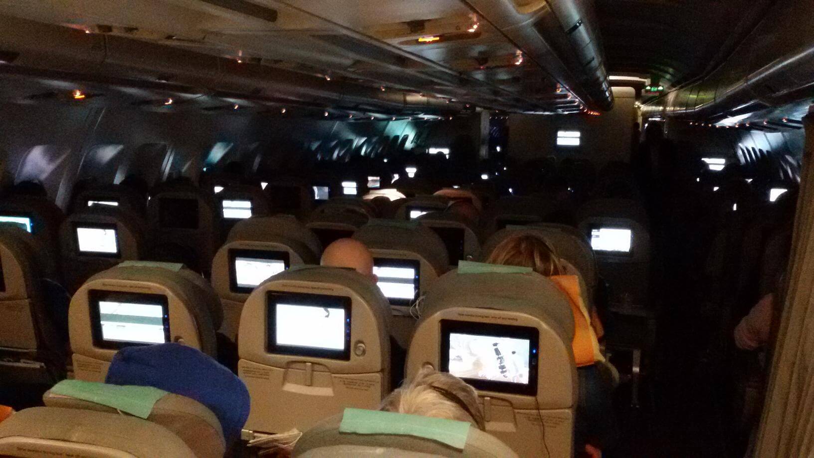 The first leg of the flight went well. The A300 was clean, the crew friendly and the two meals edible. The entertainment program looked pretty solid as well. I gave my new ebook reader and Tolstoy a go instead, did some work at some point and in general spent the rest of the flight either dozing or stretching my legs in the galley area.