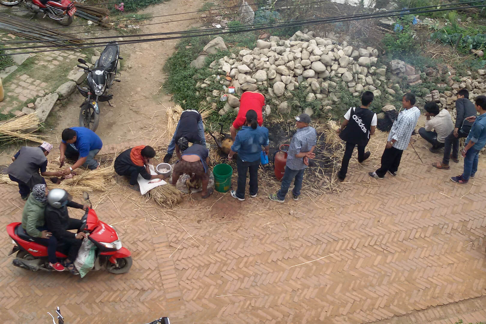Fortunately it’s not a return of the Maoist insurgency but merely another religious event. This time every family worships its cast’s deity by means of a goat sacrifice. Right in front of their houses.