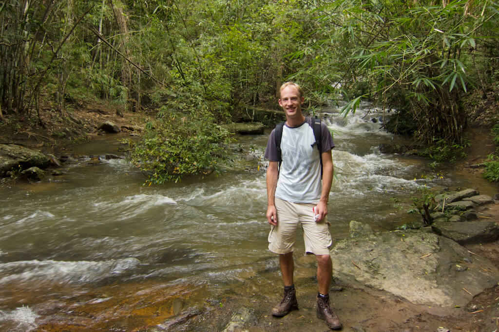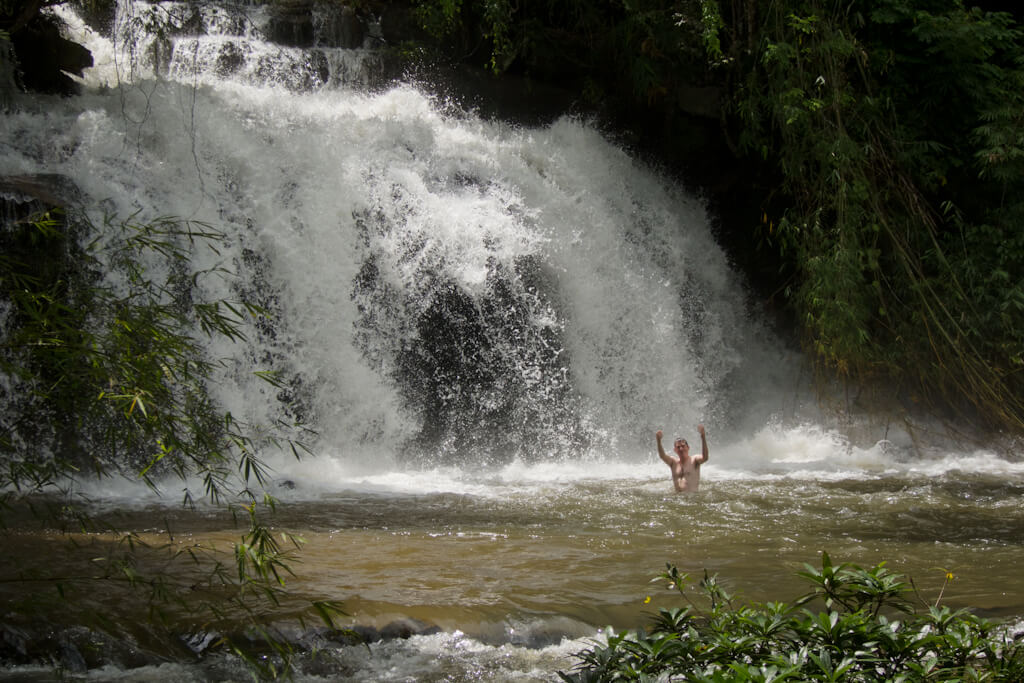 The first part of the way is a ‘road’ that is used by local farmers. Road means it’s wider than a footpath and firm enough to drive it with a motorcycle. After roughly half an hour we reached some rapids that we followed into the jungle. Walking got a bit tougher here as the way led up and down and sometimes over wet rocks. You can say what you want but walking through a humid rainforest when it’s got over 30°C is something different.