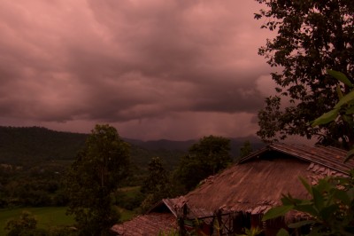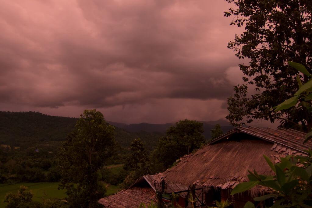 The day didn’t bring much rain, but when night fell a thunderstorm came over the mountains. When you sit in a bamboo hut that is a slightly intimidating sight. Maybe not intimidating but certainly humbling.