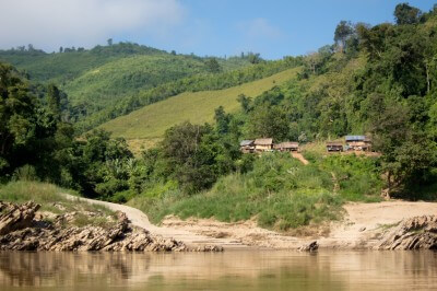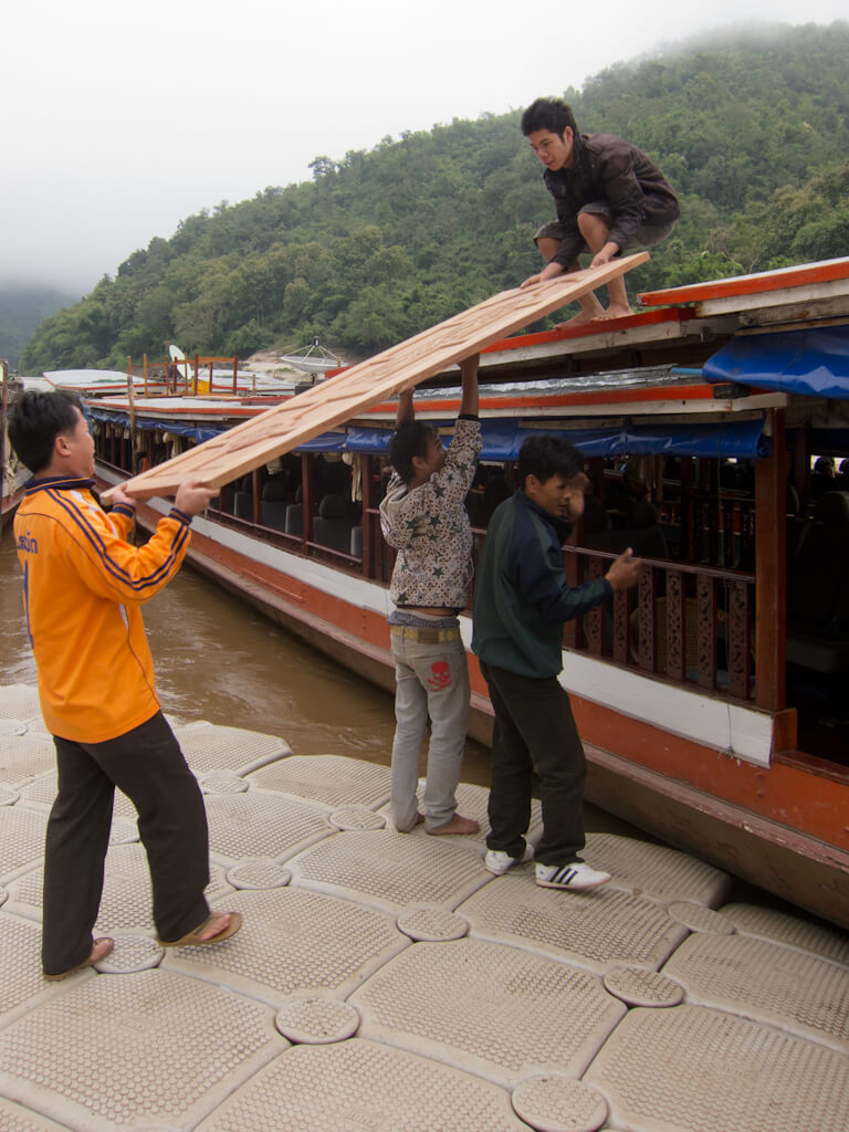 As in Luang Prabang the boats leave at 8:30 and we made our way there early to make sure we’d get a good seat on the boat. It wasn’t necessary though, there was about 20 passengers aboard. The crews finished loading the cargo and off we went.