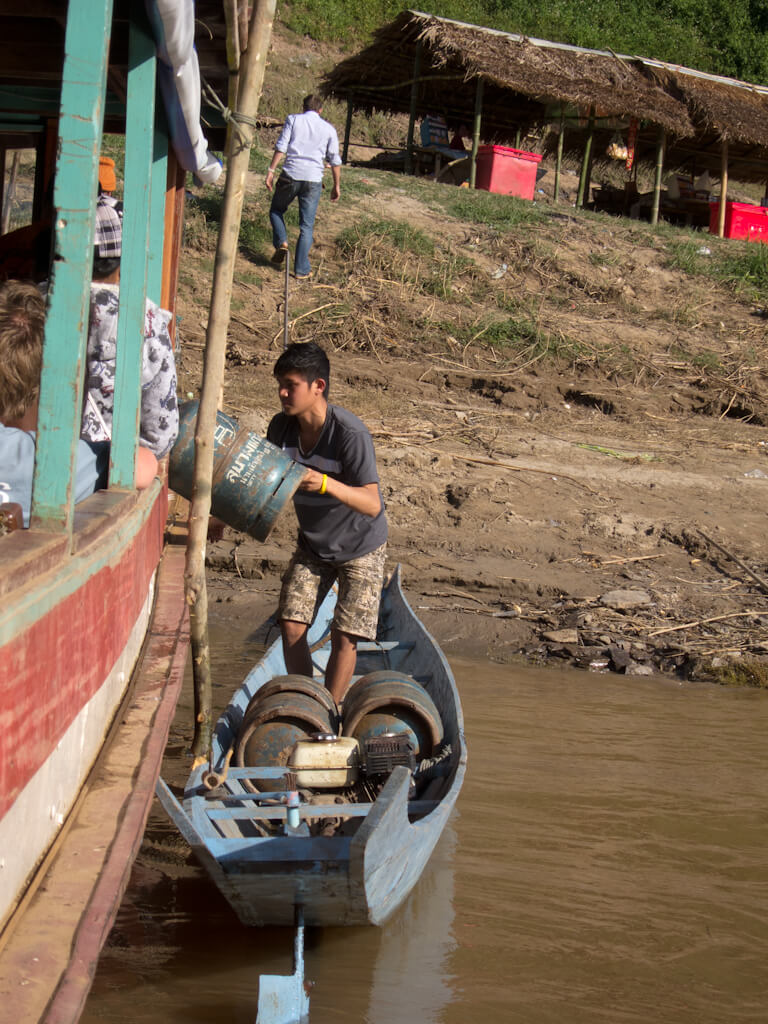 With the occasional cargo stop, of course. I’m assuming these bottles were empty, as the crew was constantly smoking right next to them. Can’t figure out why they’d unload empty gas bottles at a small river village, though.