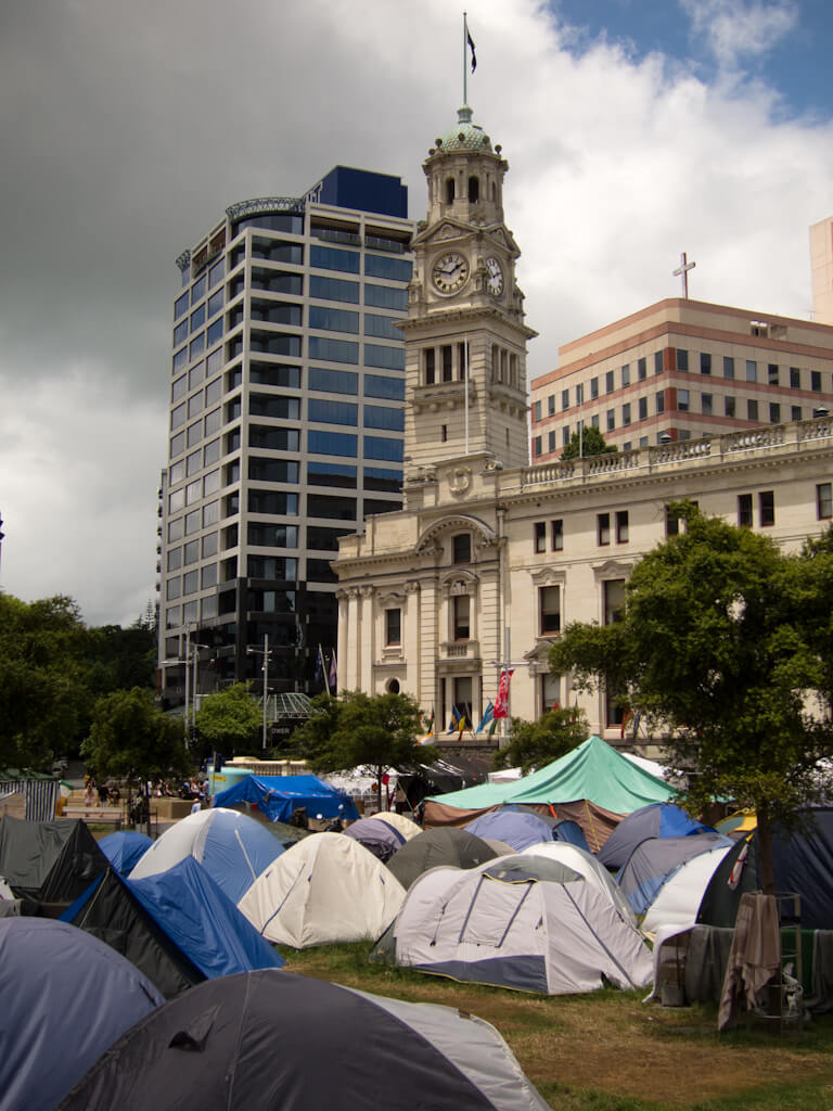 Our walk lead us up Queen St to Aotea Square, a place where markets are held and art events take place. At the moment part of it is occupied by followers of the world-wide anti-capitalism movement. Pretty much looks like a bunch of bums too lazy to work but I might be mistaken there.