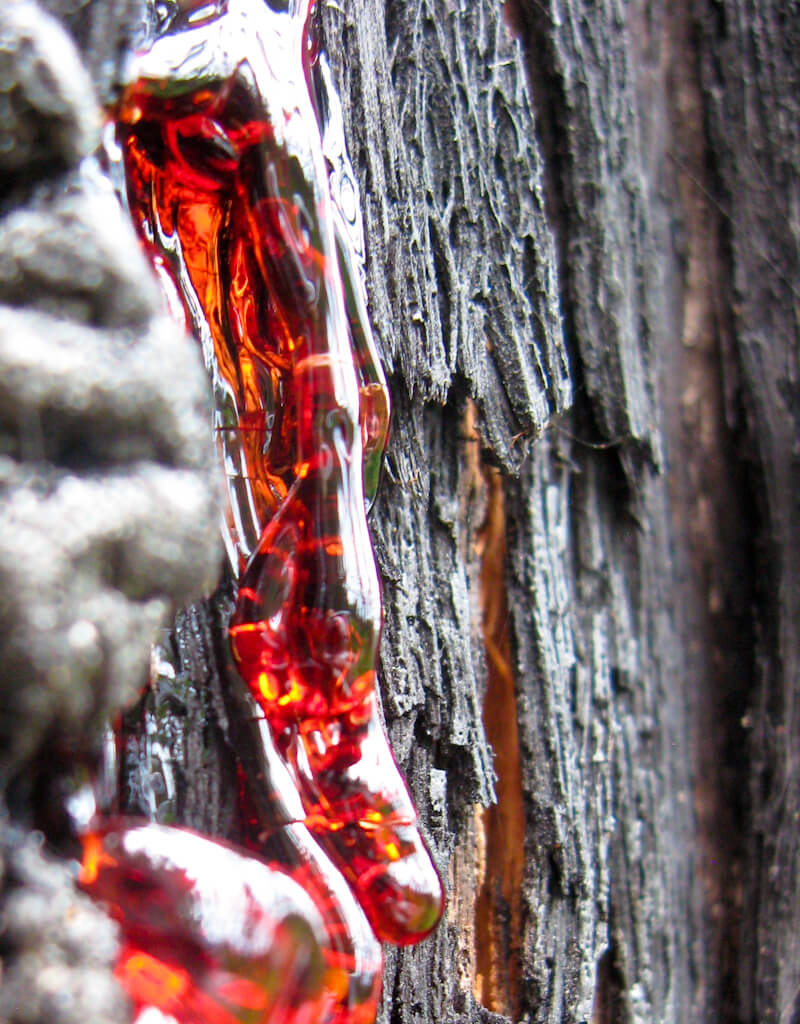 Touching the tree trunks feels like touching a thoroughly burned piece of wood, just falling to ashes between the fingers.