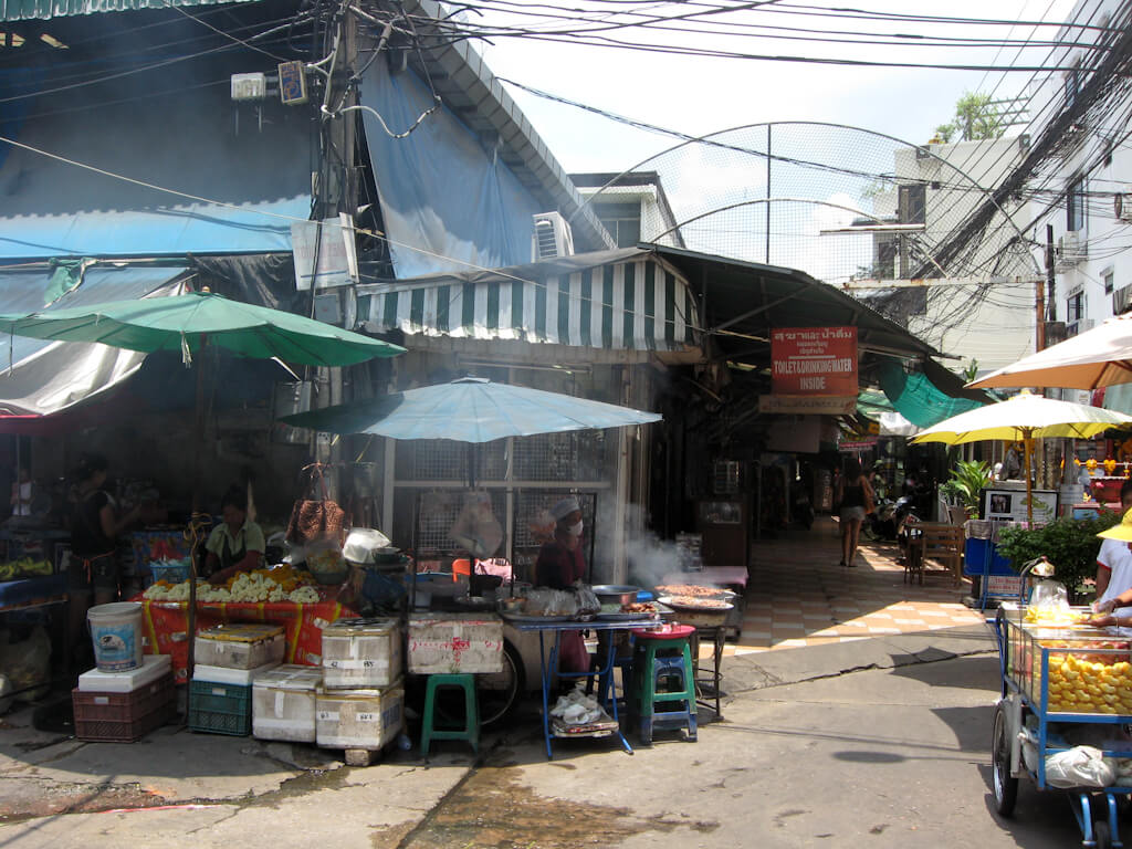During the day Bangkok is as overwhelming as it is at night. The streets are full with taxis, tuk-tuks, scooters and buses and simply crossing the street becomes the first adventure of the day. The area around the hostel isn’t a major tourist destination so most people in the street are actually Thai. Which means I stick out and not just because I’m roughly one head taller than the average Thai.