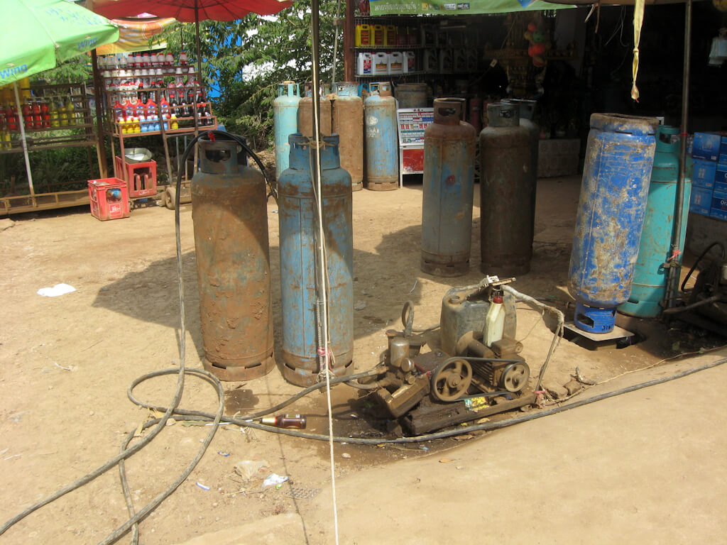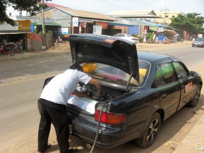 My driver escorts me to his aged Toyota Camry and after a couple of attempts that thing starts up. Ten minutes down the road we make a stop for gas. Cambodia seems to be very advanced as they use autogas a lot.