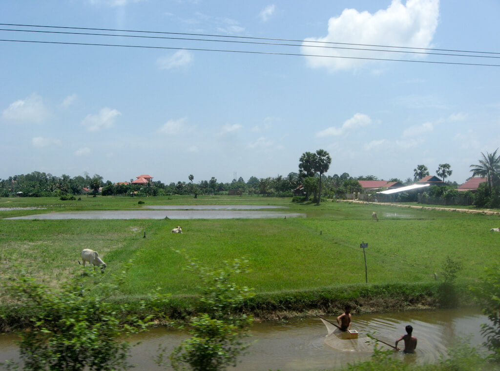 My guest house organized a bus ticket to Battambang for me and with the usual slight delay I was picked up and transported to the main bus station this morning. The place is basically a big hall with a couple of buses and merchants trying to sell fruit, bread and other stuff. Quite similar to Thailand just the signs are in Khmer instead of Thai script.