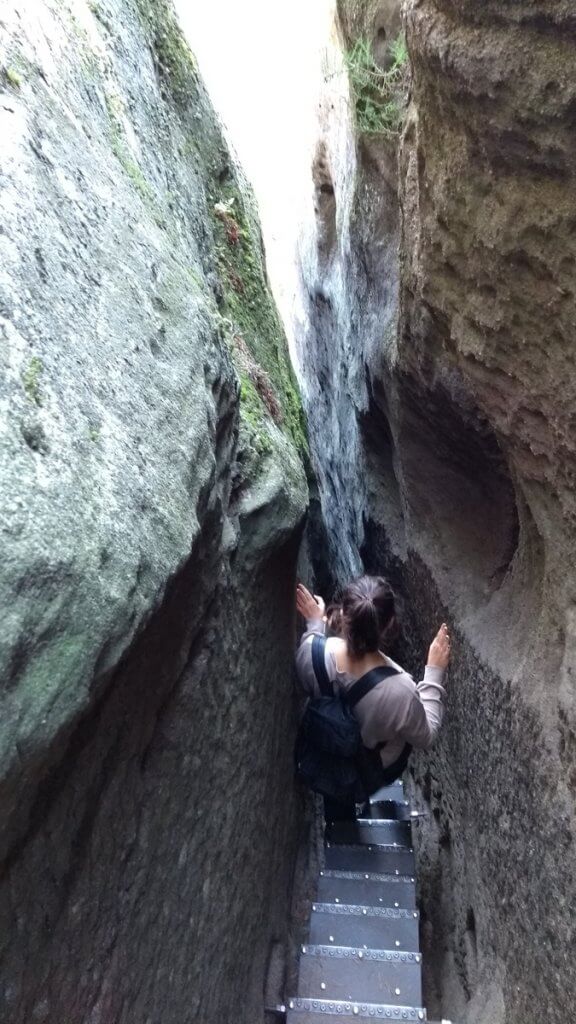 Crossing the border also means crossing the Kirnitzsch, a tiny river that has carved a deep gorge over the millenia. Crossing the river itself was the easy part, thanks to some huge treetrunks that had fallen over it. Getting down to it and back up on the other side posed a considerably bigger challenge.