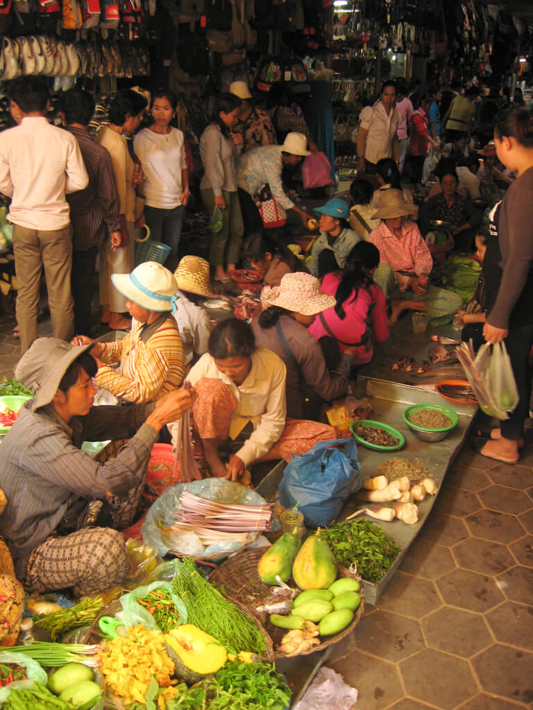 Before heading to Angkor today I went into town to have a look at the local market. From the guest house it’s just a relaxed ten minute walk along the river.
