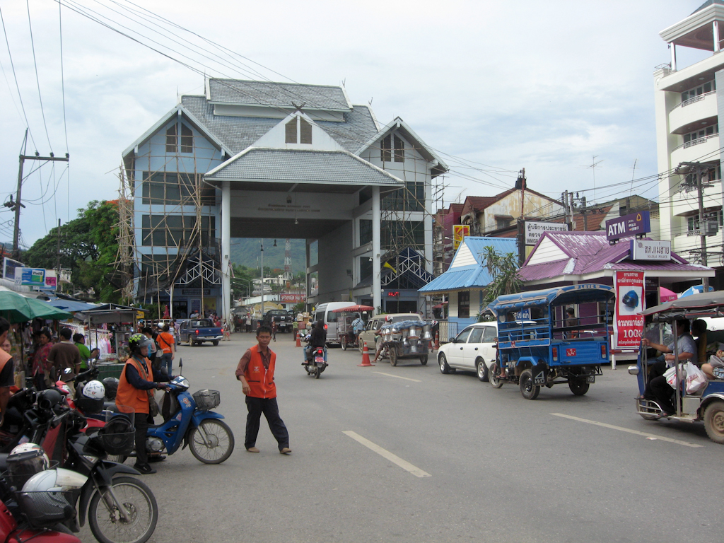 Upon arrival in Mae Sai Hiro headed for immigrations and I went to have a look around. The whole area surrounding the border crossing is a huge market where food and fake designer cloths are on offer.