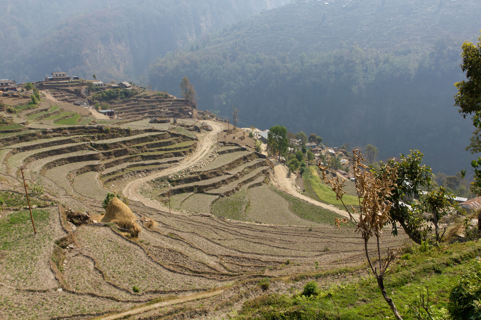 The valley we now descended into was lined by terrace fields that had an undeniable similarity to the rice terraces of Bali.