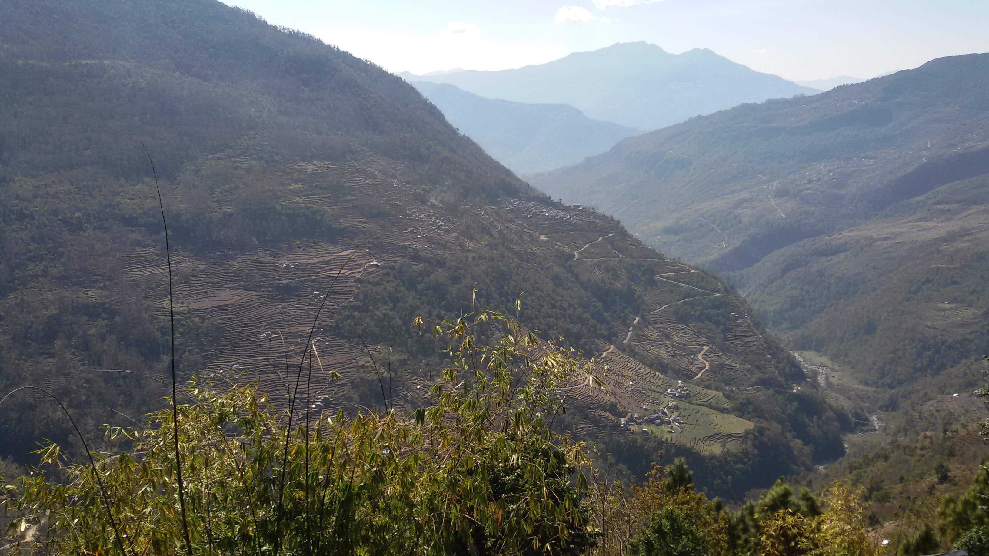 Finally, at 11:30, on 2300m, we reach the lunch stop. Dal Baht power, 24 hours. I’m exhausted and doubt my ability to carry on. Everything in me screams to remain sitting in the warm sun and have another coffee. But Kamala has her bearings on and we resume at 12:30.