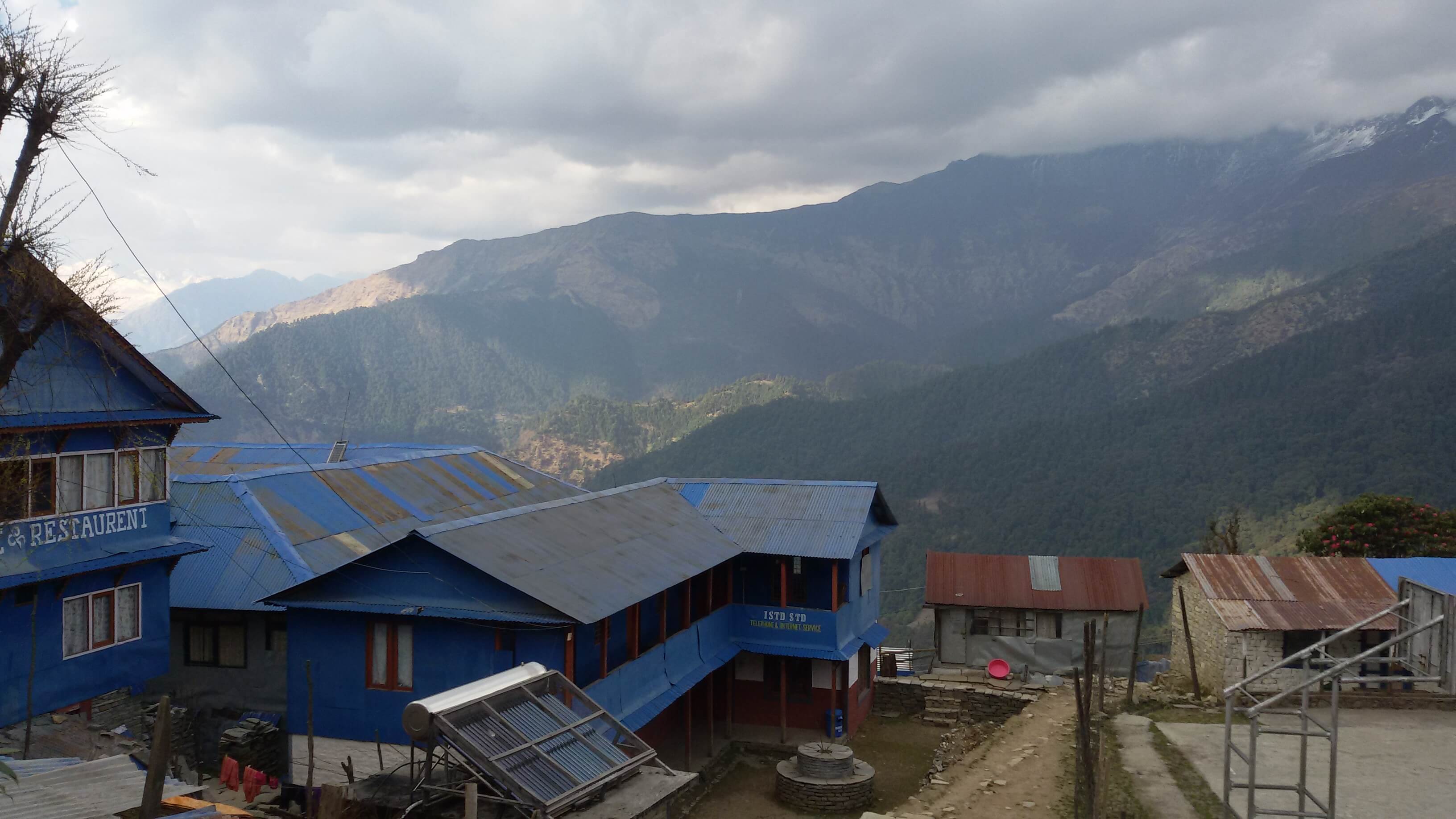 16:00 Gorepani @ 2860m. Amazing views of Dhaulagiri 8167m. We can also see Kophra ridge (the one that leads into the clouds), our destination for day five.