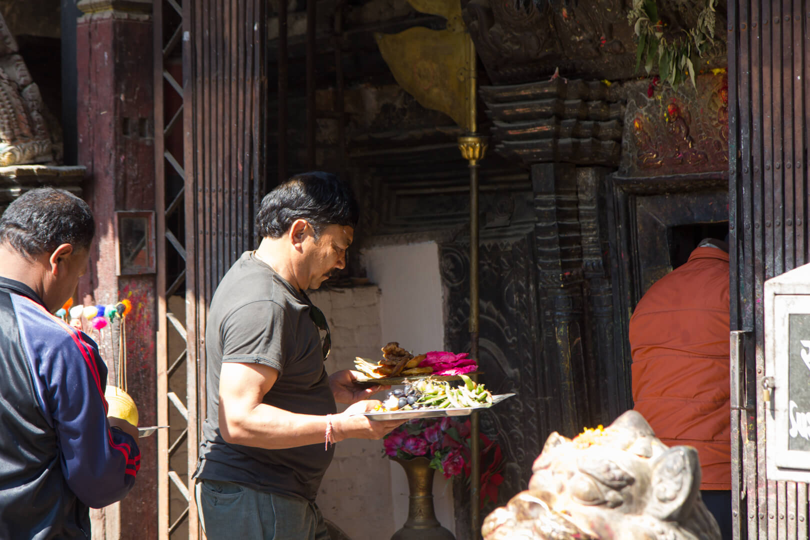 10-15 minutes into our visit, drumbeats announced a procession headed for the holy ground. In tail of the musicians were a group of locals, bringing offerings to the temple.