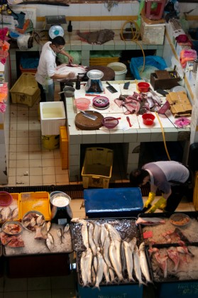The market in Melaka is of average size and seems to see few western visitors, as a fellow backpacker from the hostel and me were pretty much the centre of attention. Especially the fish merchants were extremely keen to present their products.