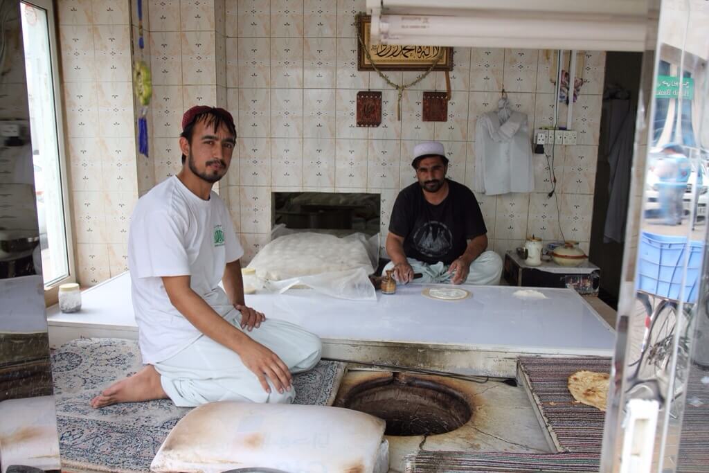 Fortunately a stroll through the neighborhood revealed that even in Abu Dhabi there is street food. A local bakery produces some cheese filled pide bread in their tandoori style oven and with 3 Dh a fix it costs less than a tenth of what the hotel charges for a basic meal. Yummy!