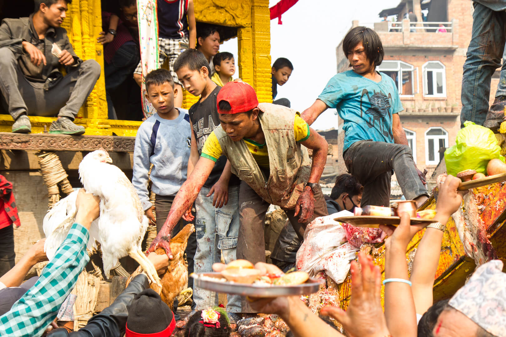 The way to the place where the chariot is currently parked was filled with locals, most of them carrying a plate with offerings and a chicken.