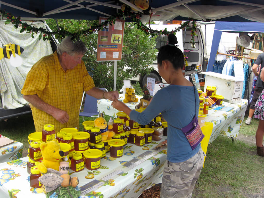 On Sunday we spent our last day on the markets in Byron Bay. They’re held monthly and offer a wide range of local and international products. One shop even offered “Traditional German Bratwurst”. I gave it a try and it really wasn’t too bad. I can’t remember being served bratwurst with sauerkraut in Germany though.