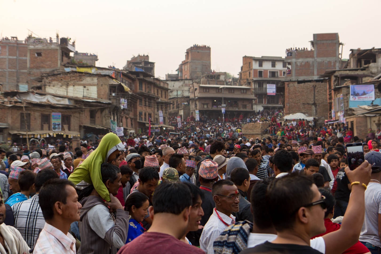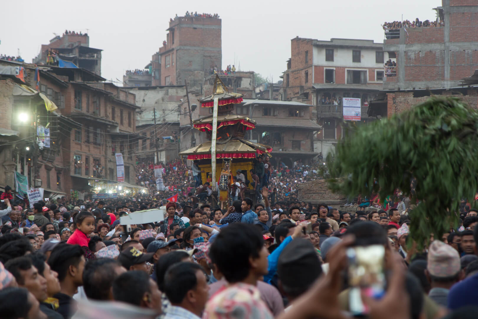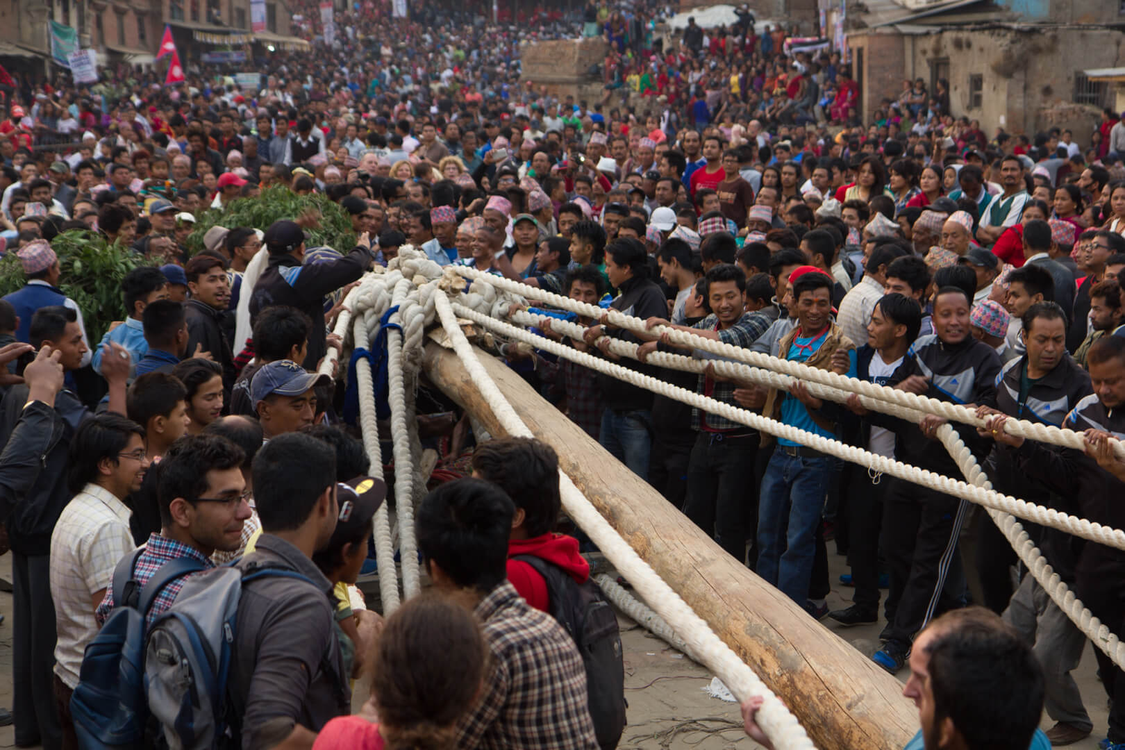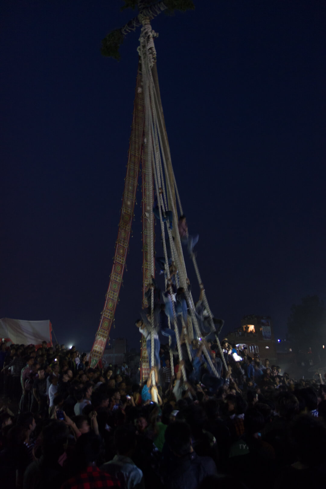 The crowd was massive and again hundreds of participants were pulling at the ropes to get the former tree skywards. I got the impression that efficiency is secondary and everybody is happy as long as they can shout and jump up and down.
