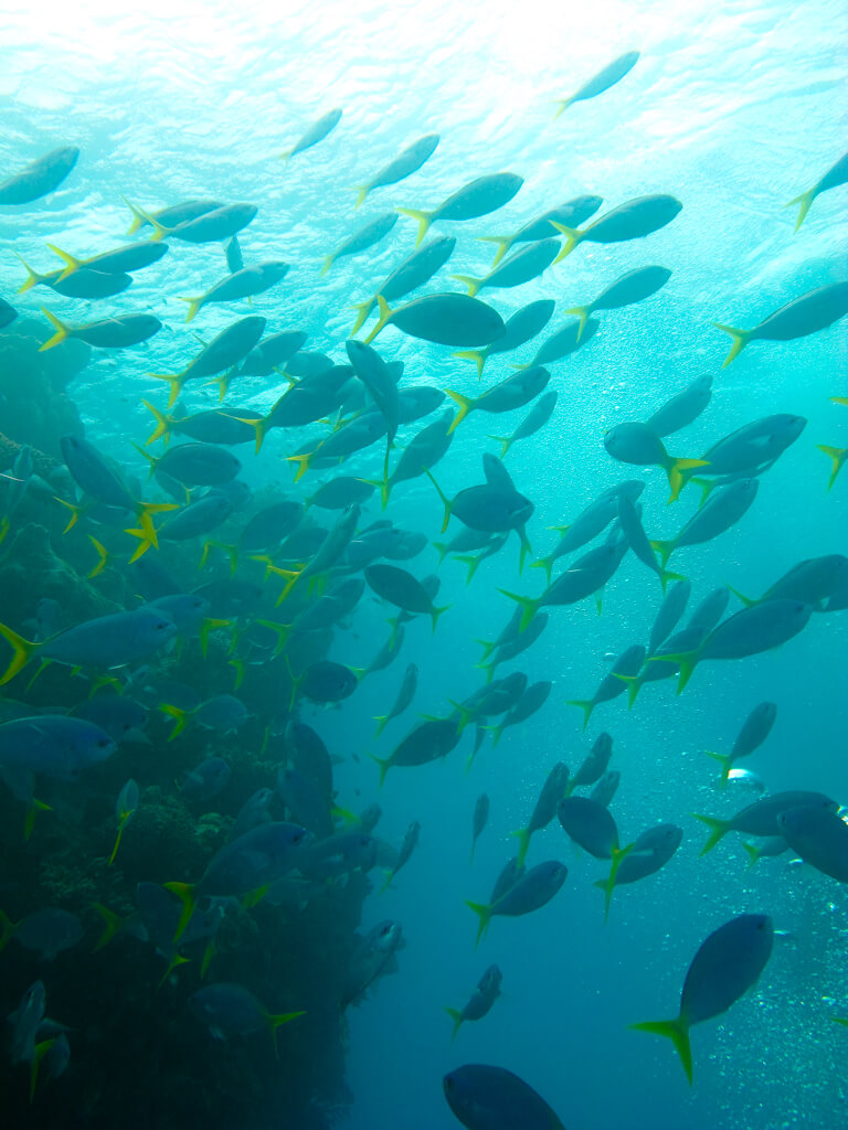 One particular thing I like about diving compared to snorkelling is the feeling of being in-midst the rich reef wildlife. You are eye to eye with 50cm predatory fishes and large schools of fish are swimming around everywhere.