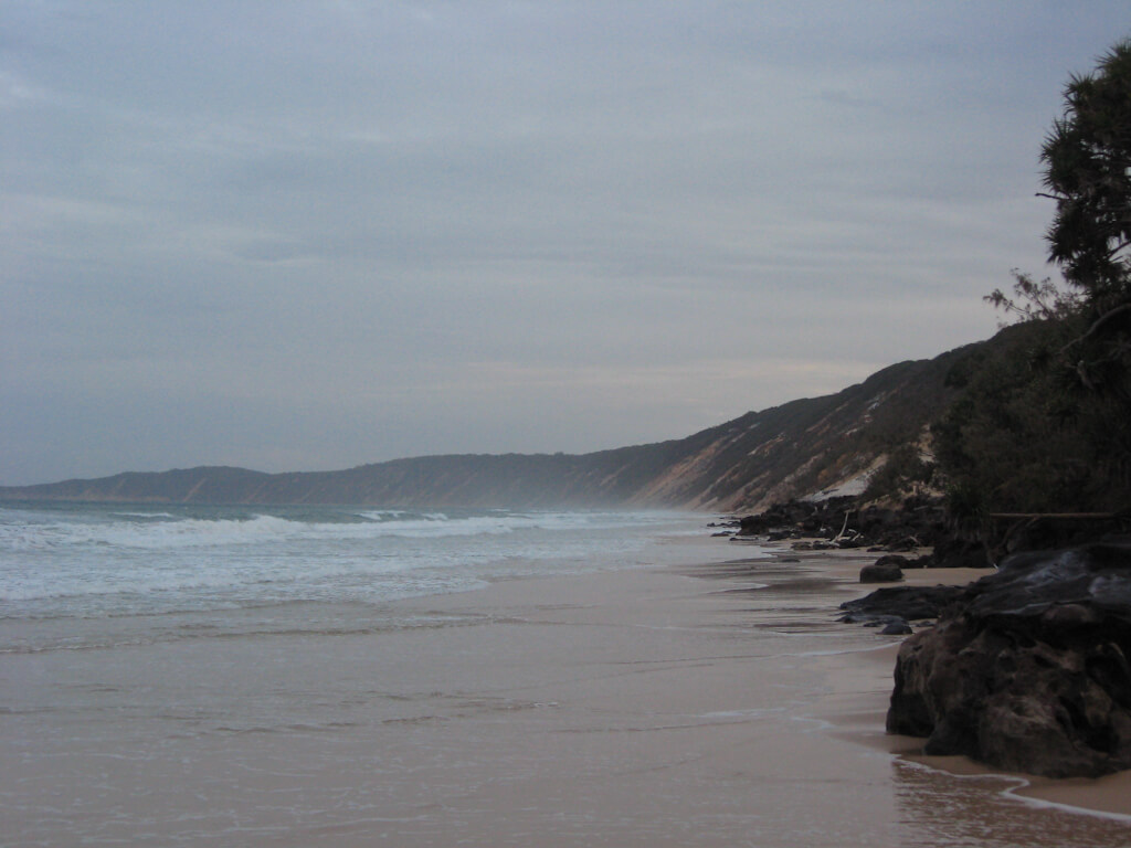 The car really is a bit dirty as nothing but rain has cleaned it for the last 3000 km. We are up for a relaxed day and just drive the short way down to Rainbow Beach. That place probably looks really nice in good weather but at the moment the 2000km from Cooktown to Brisbane are covered in one large cloud.