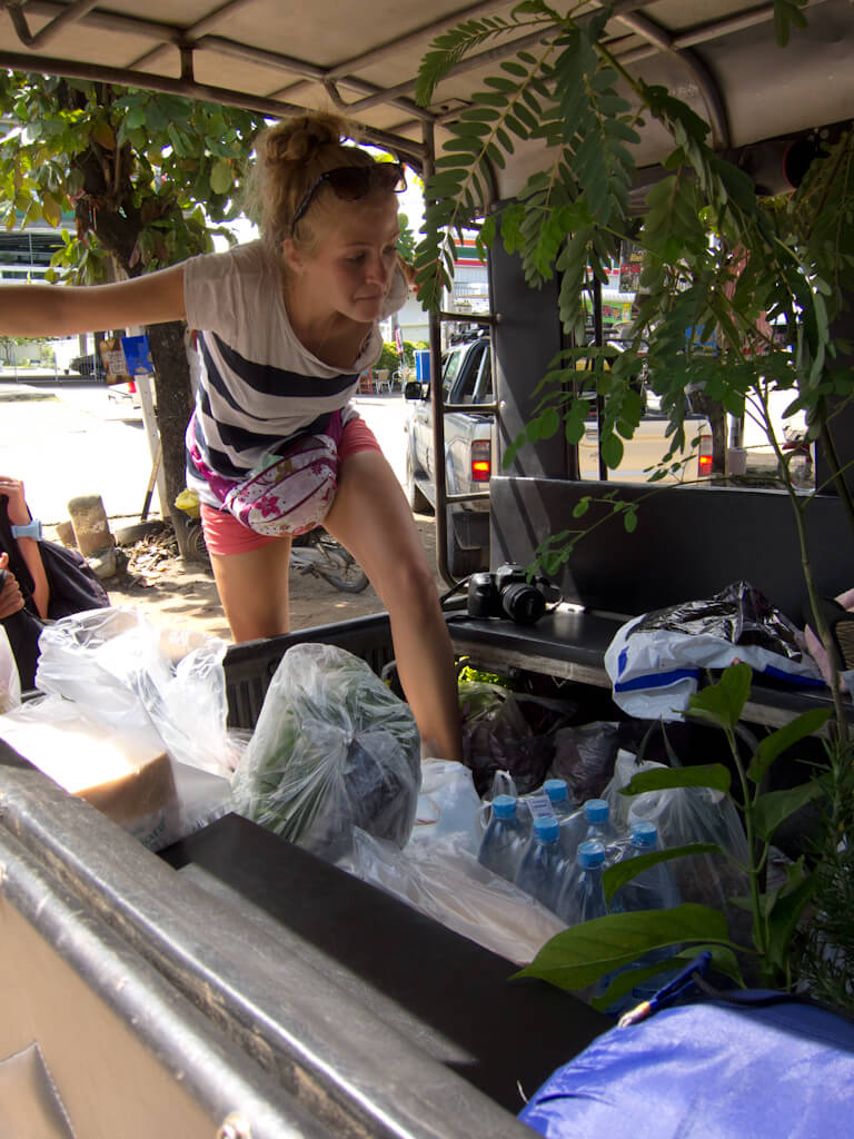 Our first stop was about 45 minutes outside of Chiang Mai where we went to get supplies at a local market. Bringing water is always an important point as tab water is basically undrinkable (for westerners) all over SEA.