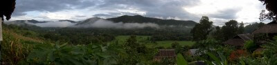 When we arrived at Samart’s bungalows we were richly compensated for everything. The location is simply breathtaking, overlooking a valley and a distant mountain range.