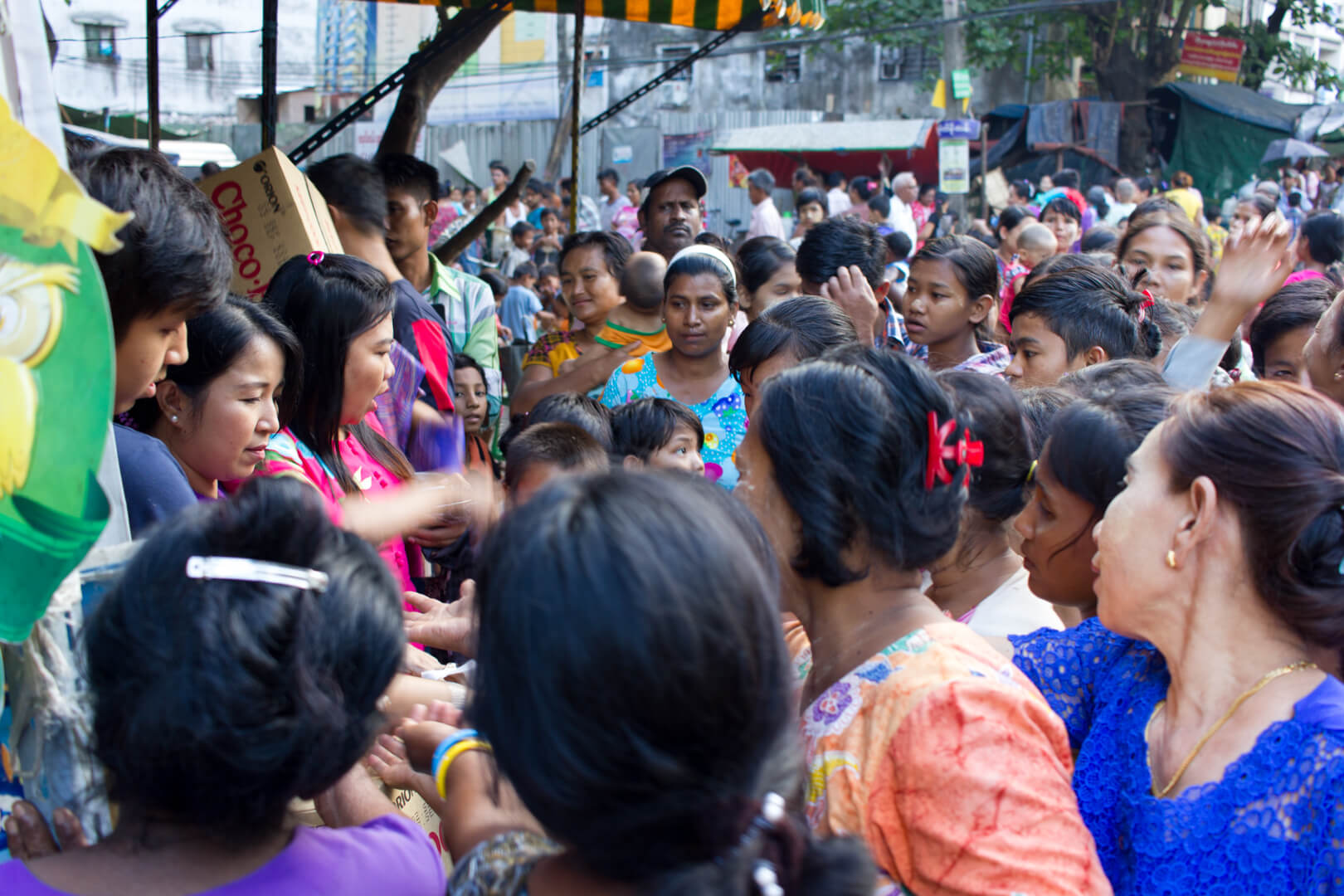 From what staff at the hostel told me, people travel from the outer parts of Yangon to this part of town in the hopes to fill their bellies and bags.