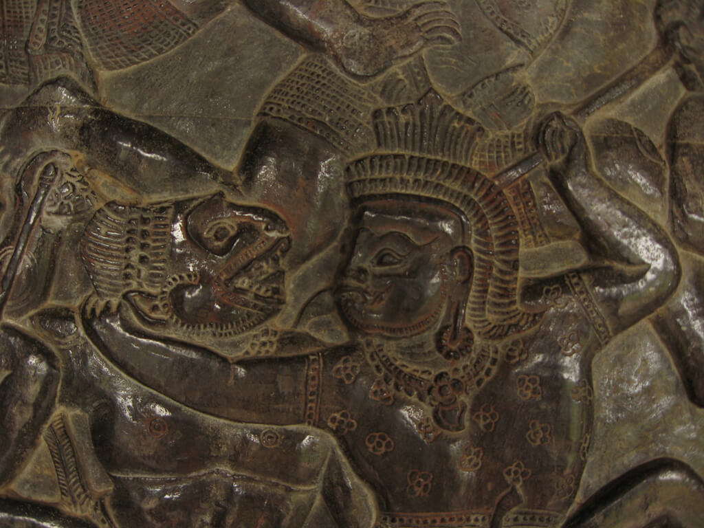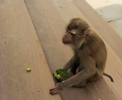 Walking over the causeway towards the entrance gives you a good idea of how large that 190m wide moat is. Inside the temple area I almost stumbled over a wild monkey