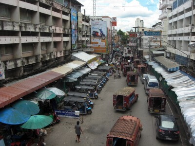 The market is a 15 minute walk from the appartement where we are staying. A cheap alternative to get there is a red taxi. These taxis are basically utes with two benches in the back and a roof over them. You can hail them and tell them where you want to go. If it’s on their way they quote a price and take you along. Together with everybody else who wants to go in that direction, they easily fit eight people in these taxis.