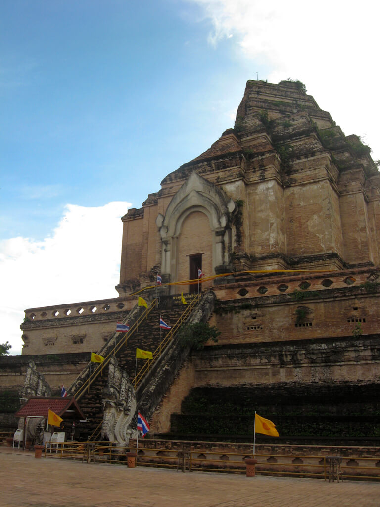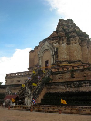 Due to some bigger job for Andy I’m still staying in Chiang Mai and rescheduled my mountain plans for next week. Today I finished that job (for now) and went to see the cities central temple, Wat Chedi Luang. It’s got its name from the remains of a big chedi (something like a tower) in its backyard.