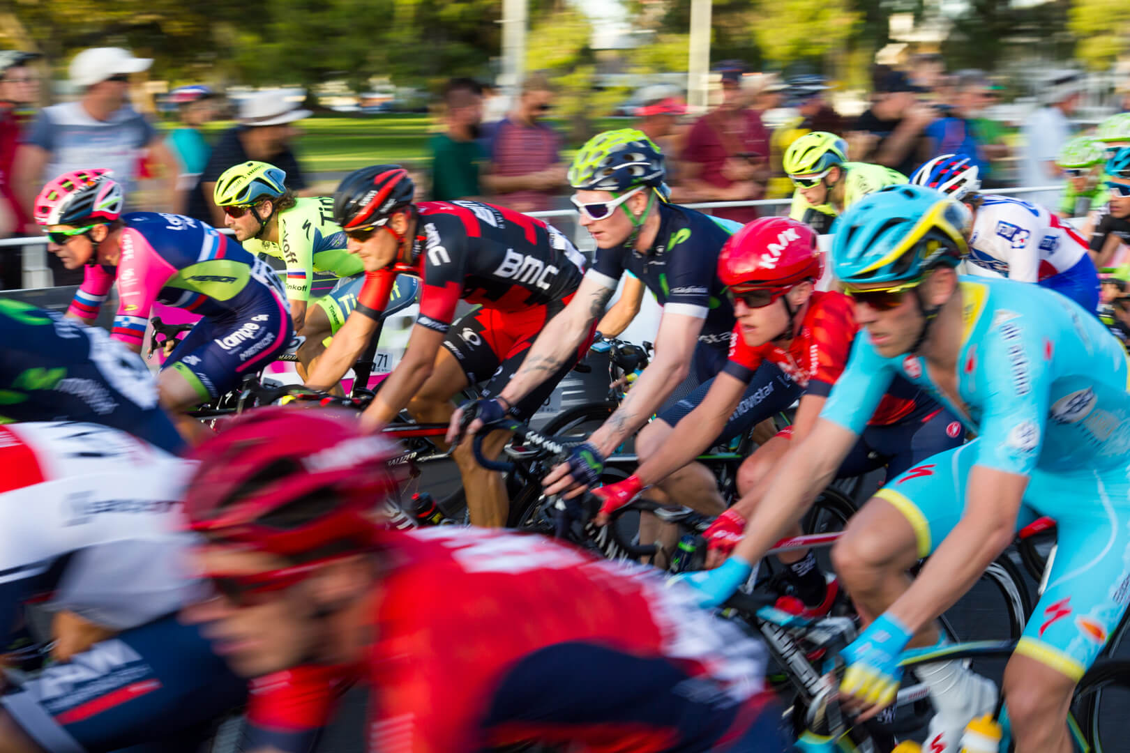 Tour Down UnderJanuary 18, 2016Racing through the streets of Adelaide in 30+° weather, a pack of international cycling professionals. adelaideau