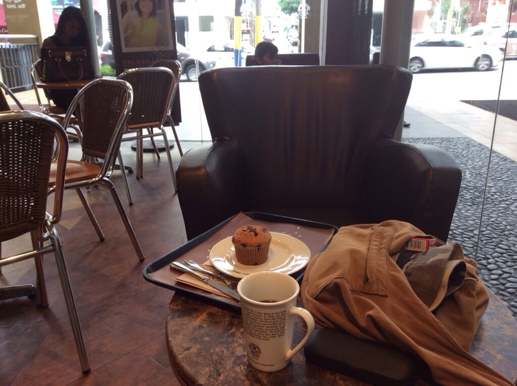 The cafe I’m sitting in could as well be a Starbucks in Berlin. If it wasn’t for the freezing cold air-con, the exclusively Asian customership and the armed security guard, I couldn’t tell the difference.